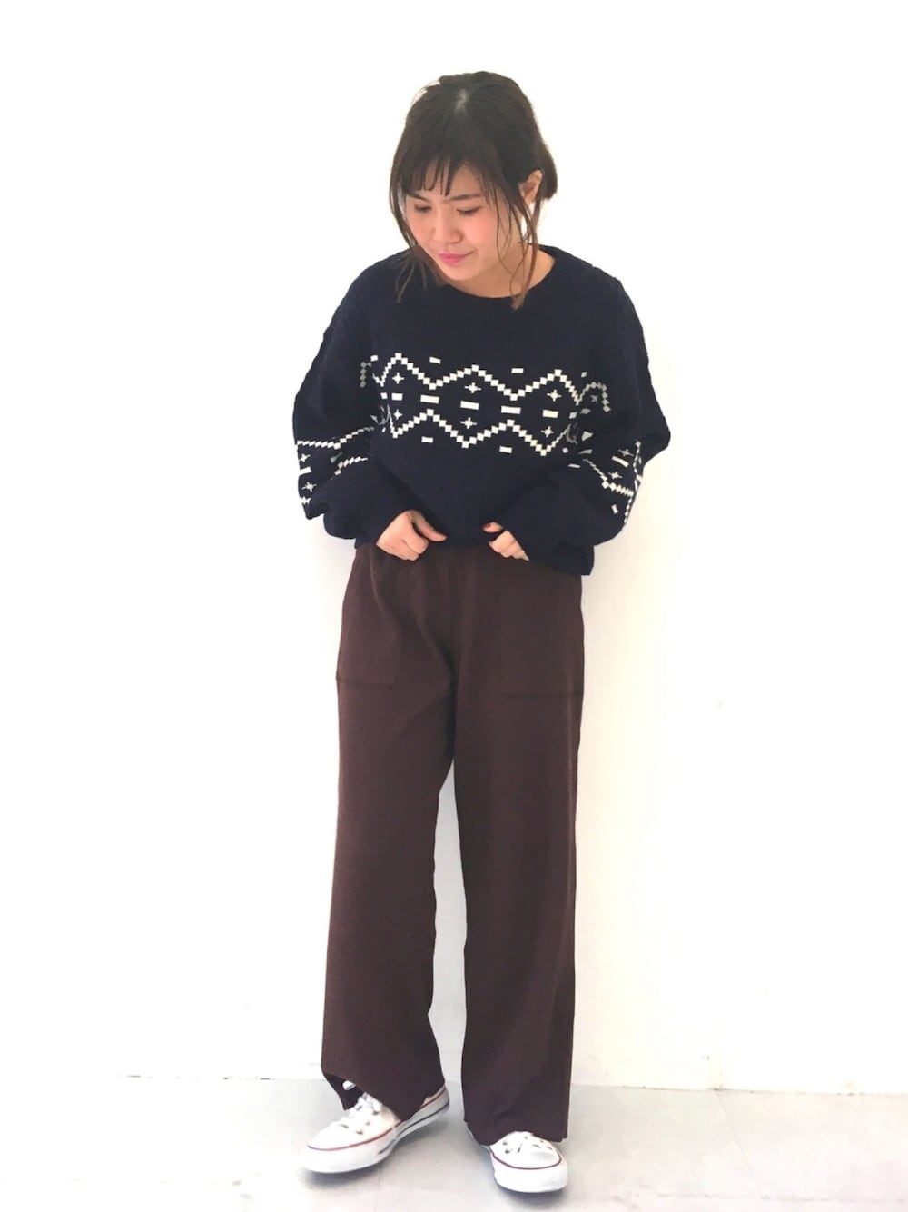 ふたわたりのニット/セーター「【三戸なつめさんコラボ】ケーブルショート丈ニットプルオーバー」を使ったコーディネート