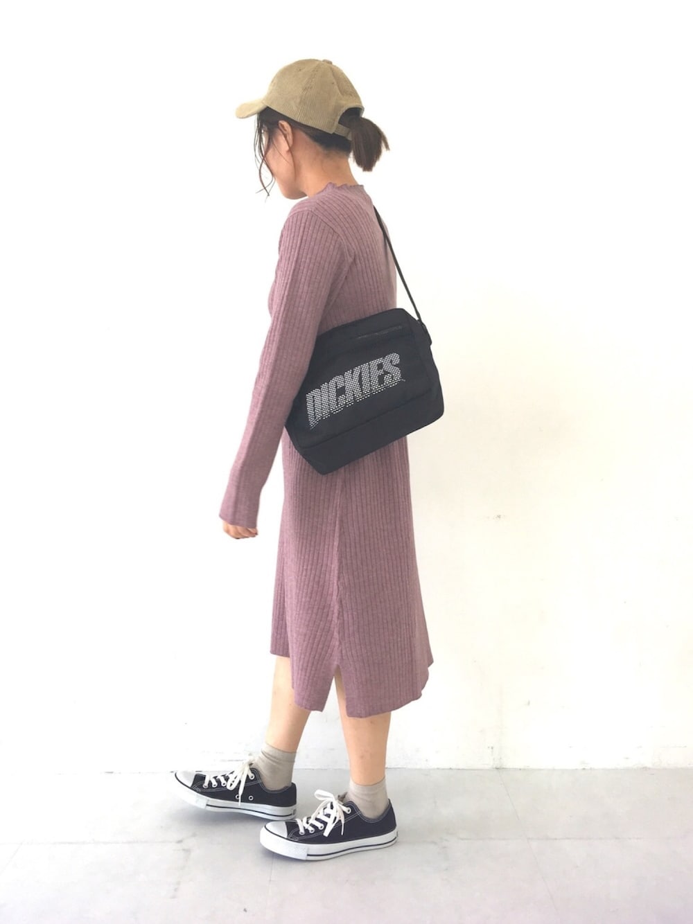 ふたわたりのワンピース「リブハイネックワンピース」を使ったコーディネート