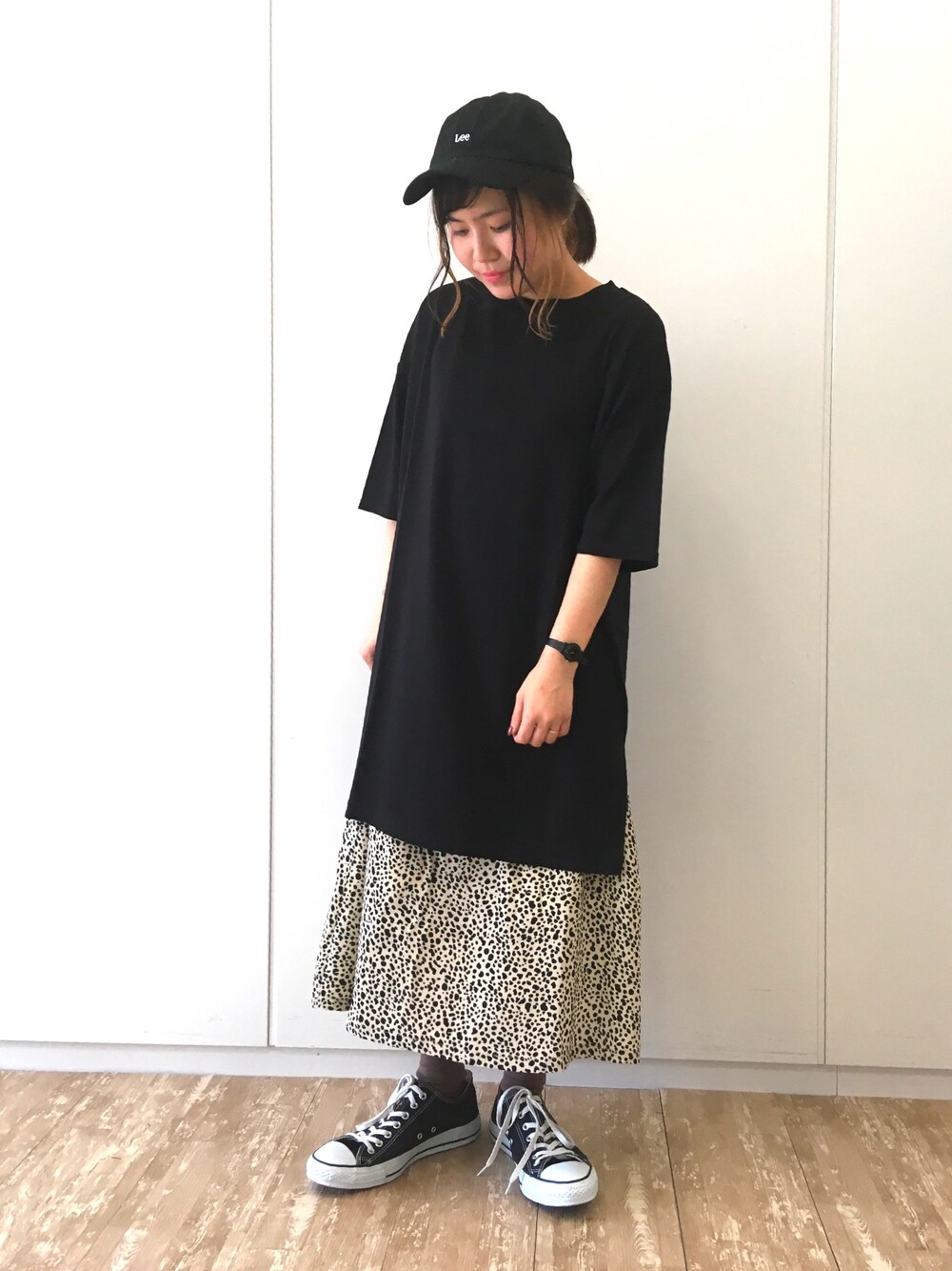 ダルメシアン柄スカートを チラ見せ! 柄スカートが抵抗のある方も レイヤードスタイルなら 楽しめます!