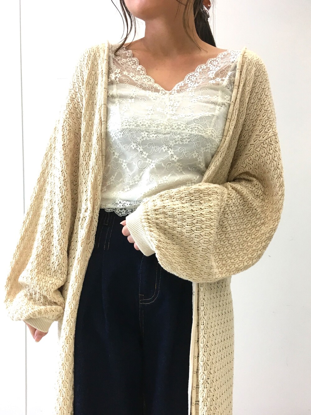 着用コーデ:6件ふたわたりのカーディガン/ボレロ「【三戸なつめコラボ】透かし編みカーディガン ●」を使ったコーディネート