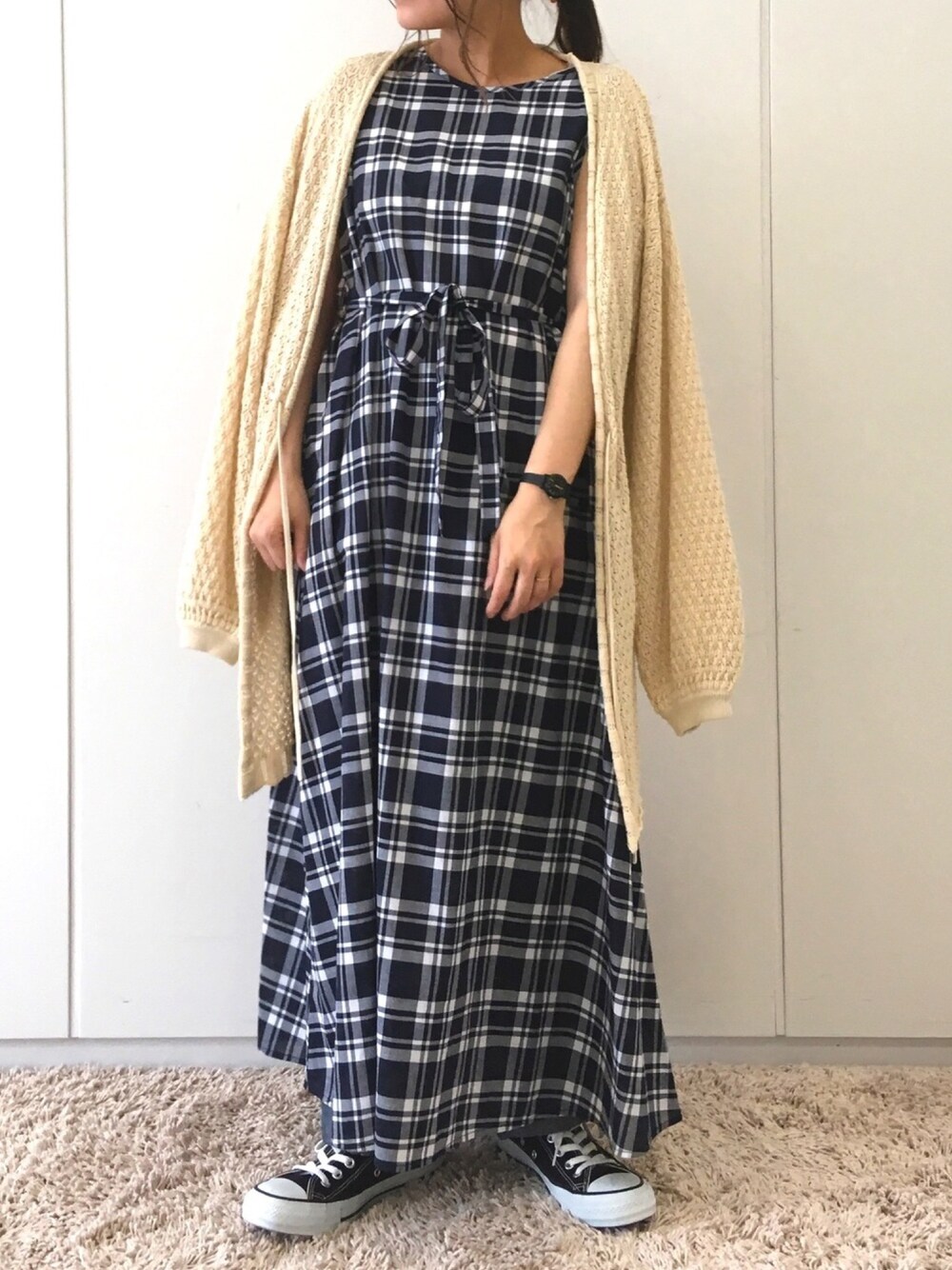 着用コーデ:6件ふたわたりのカーディガン/ボレロ「【三戸なつめコラボ】透かし編みカーディガン ●」を使ったコーディネート