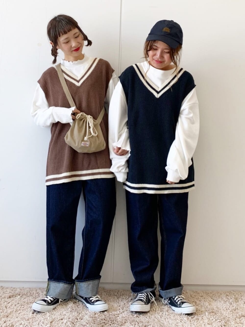 チルデンニット×デニムパンツ。 . ビッグシルエットのベストで 旬のコーデが叶います!