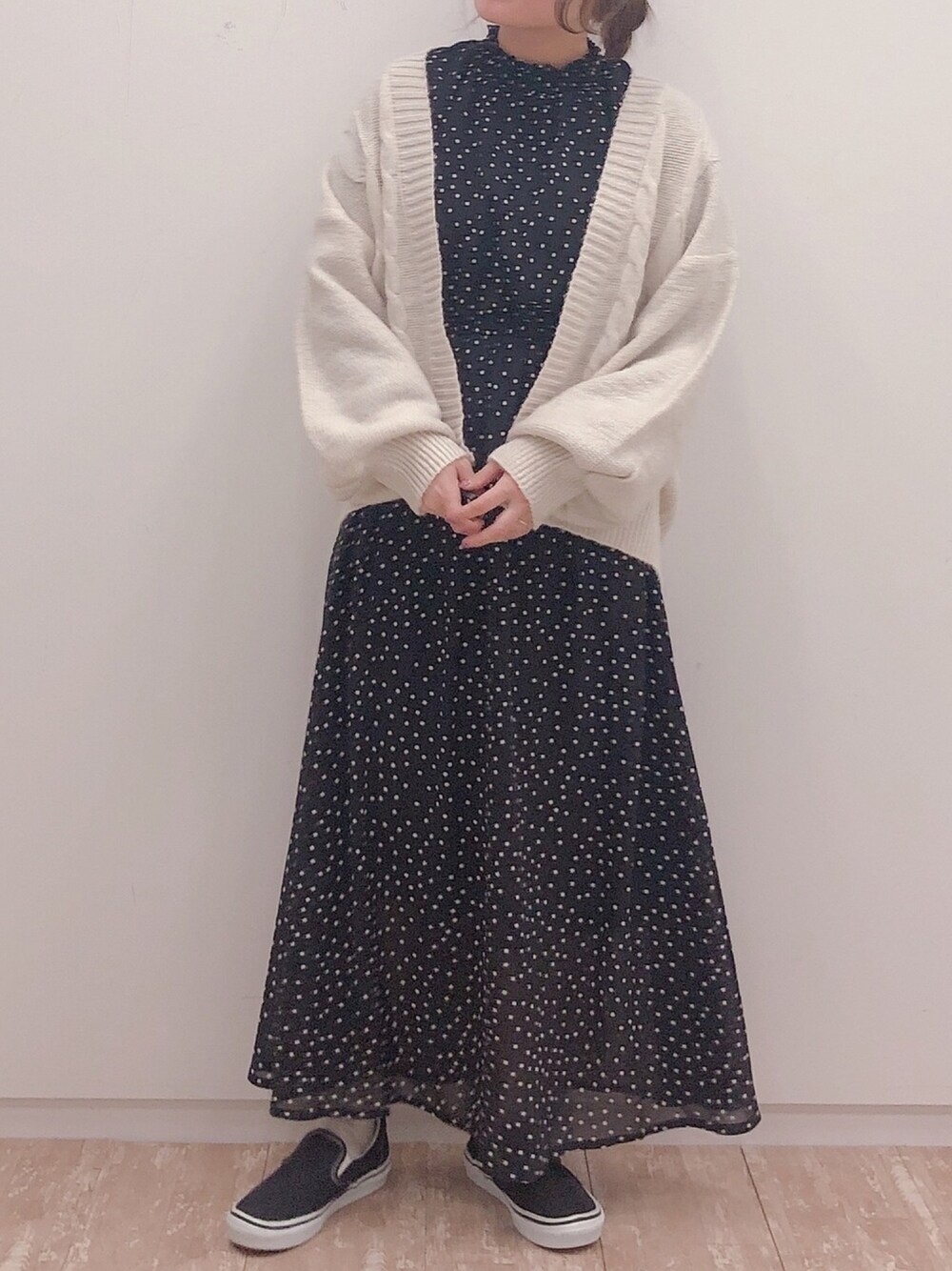 モノトーンコーデ。 ドット柄ワンピース 結構使えます!