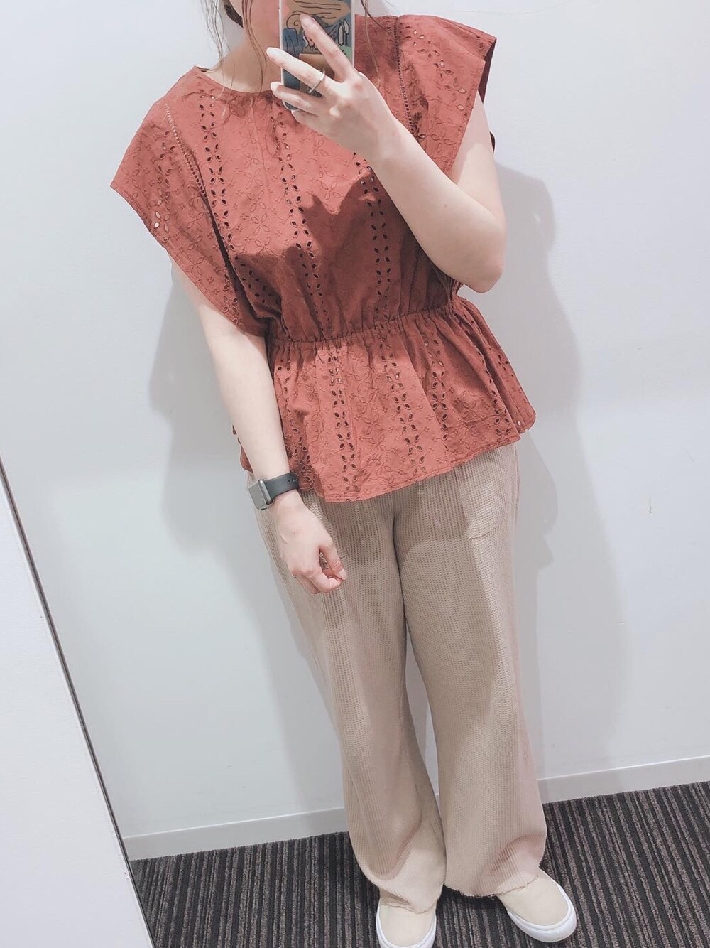 ふたわたりのシャツ/ブラウス「【2020春夏】コットン刺繍ブラウス」を使ったコーディネート