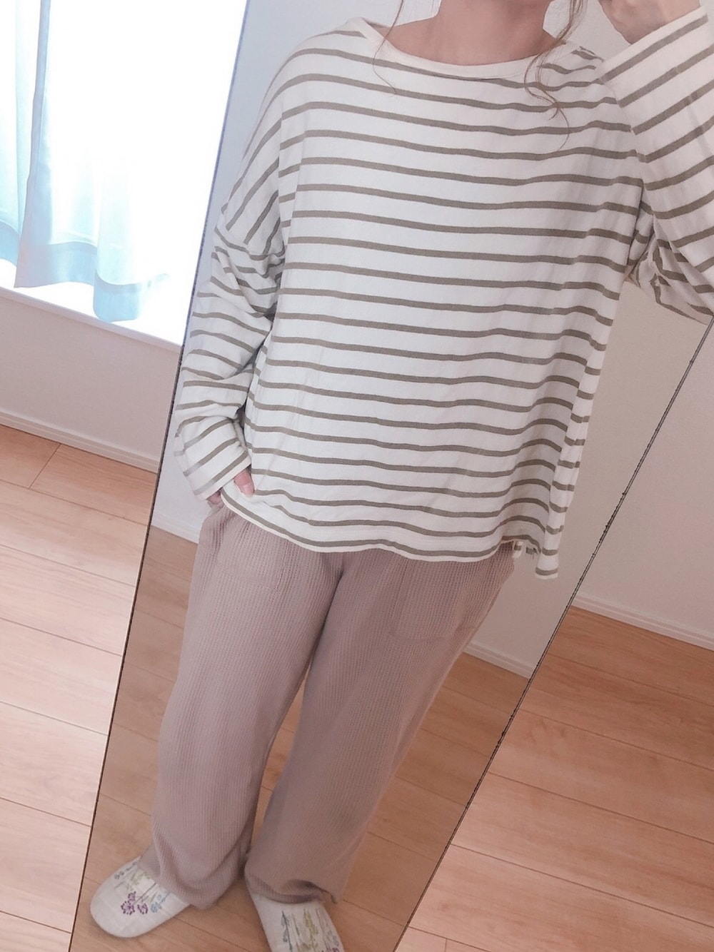 おうちコーデ。 ボーダーとワッフルパンツで 楽ちん!