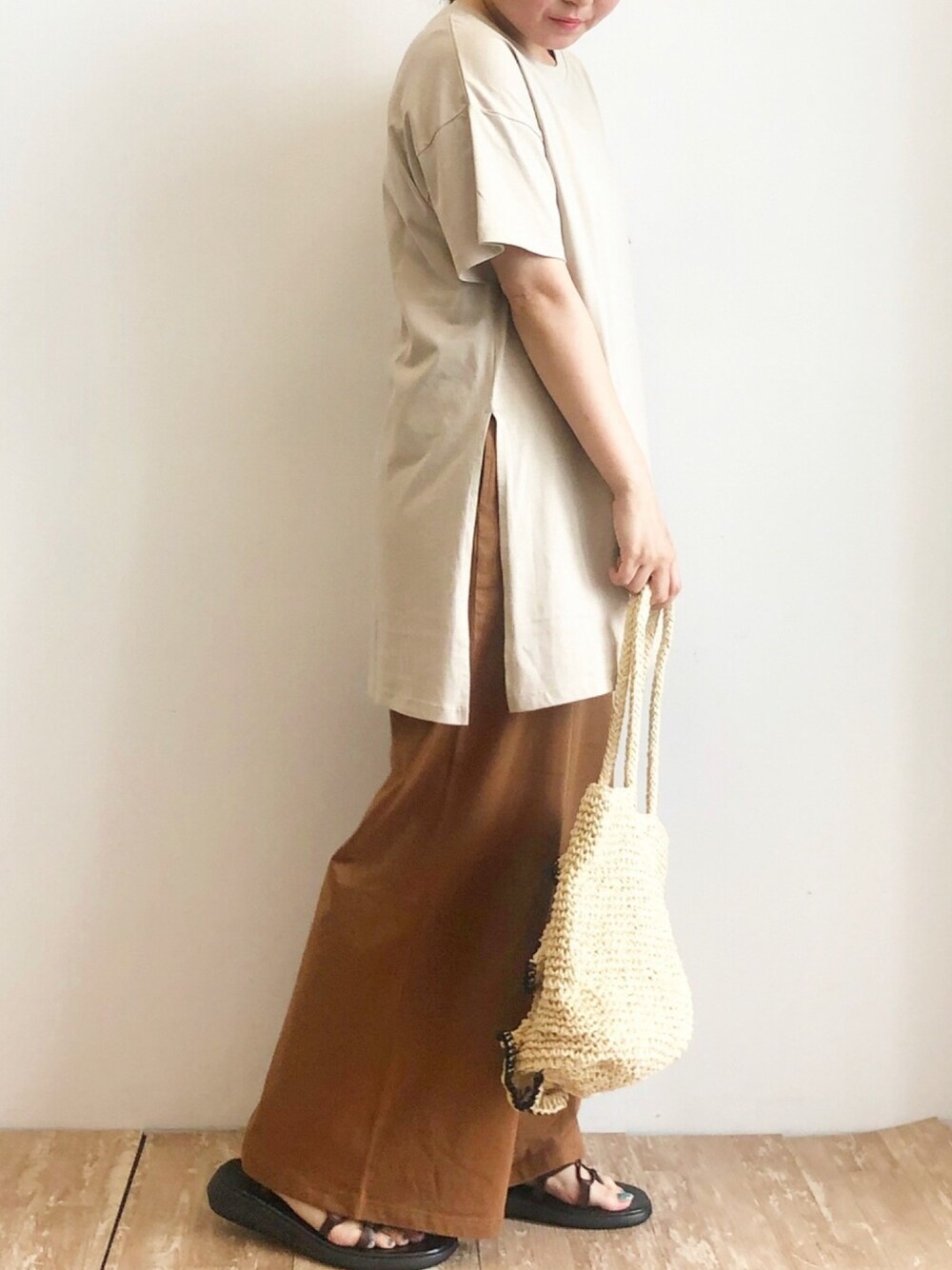 ワントーンコーデ。 スリットが深いので レイヤードしやすいです! パンツはウエストゴムで ポケットもついてます!