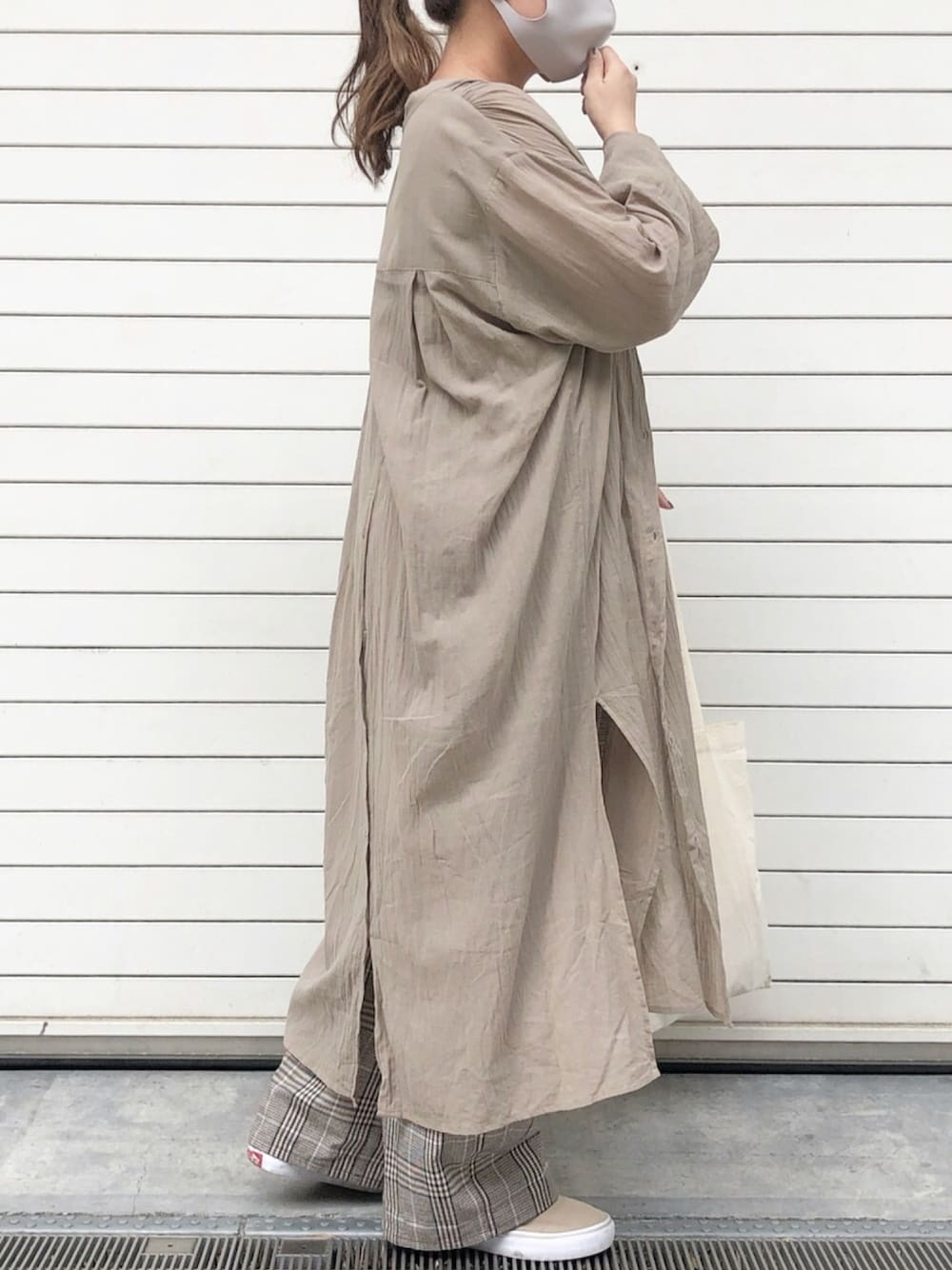 ベージュコーデ。 スリットが深く入ってるので レイヤードしやすく 落ち着いた色味が 大人っぽく見せてくれます。