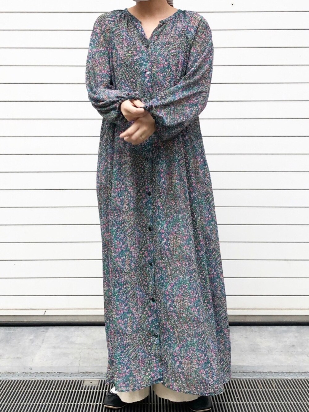 柄ワンピース👗 丈感がベスト! 階段は気をつけてね。