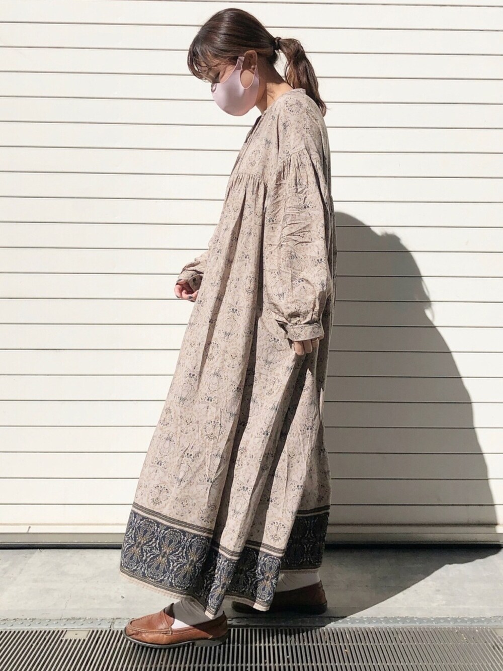 ふたわたりのワンピース「総柄ギャザーワンピース〇*」を使ったコーディネート