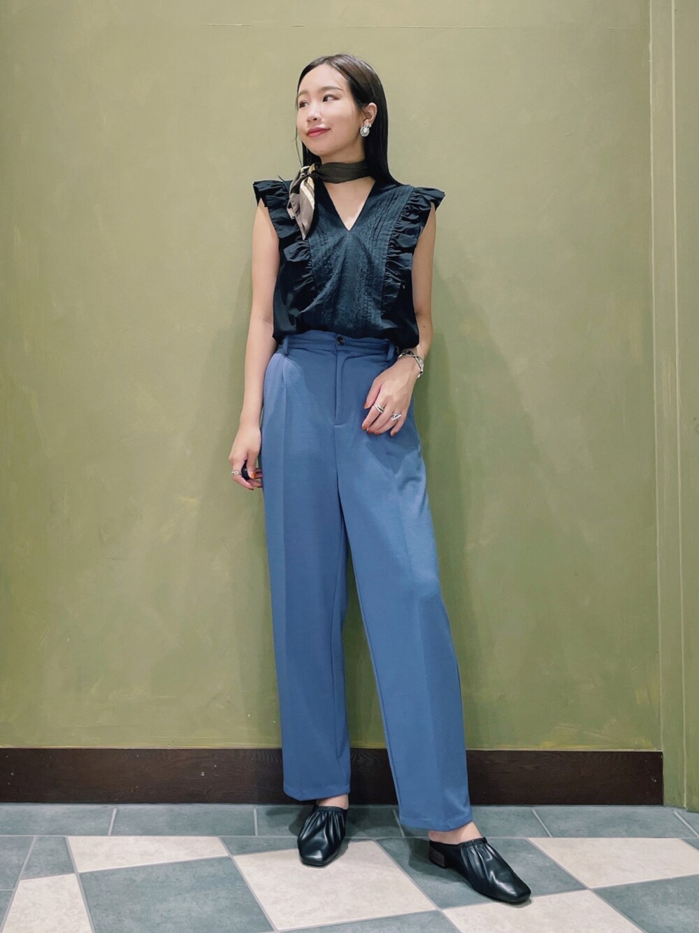 お姉さんっぽいコーデを作ってみました! ブラウスはたくさんデザインが入ってるので、 白だと可愛くて明るいっていうイメージがあるけど💦(苦手w) 今日は落ち着いた黒を選びました♪ パンツもちょっと厚めで21AW新作てす! ハイウエスで履き心地がいい トレンド感のあるアイテムです✨