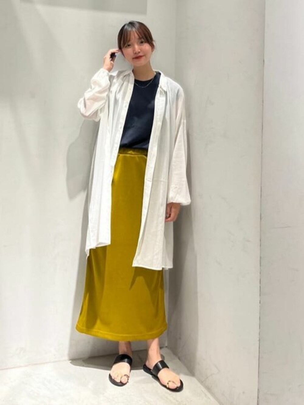 イエローのスカートが目を惹くシンプルコーデ! ◎トップス 今回着用サイズ : Mサイズ ・肌触りの良い綿素材のカットソーです。 ◎シャツチュニック 今回着用サイズ : Mサイズ ・BIGサイズでしっかりと体型カバーできます。 ・さっと羽織りやすい肌触りの良いチュニックです。 ◎スカート 今回着用サイズ : Sサイズ ・ウエストがゴムで穿きやすいです。 ・身体に沿ったタイトなシルエットですっきりとして見えます。 ◎シューズ 今回着用サイズ : Lサイズ