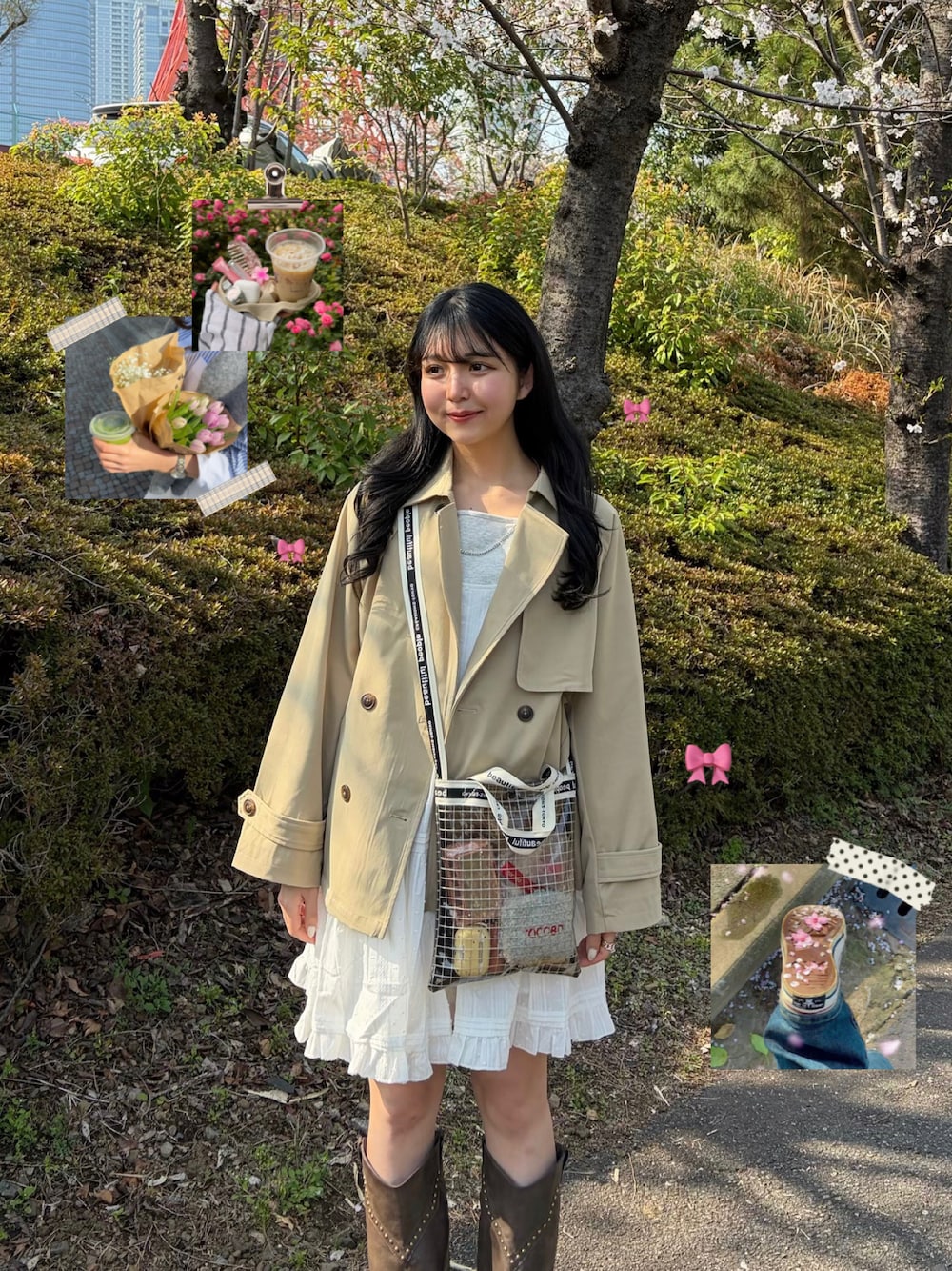 fuwa chanのトレンチコート「【Aunely】奥ゆかしぃルエット 撥水 ショート トレンチ コート/ 静電防止 & マシンウォッシュ<YOSOOIシリーズ>」を使ったコーディネート