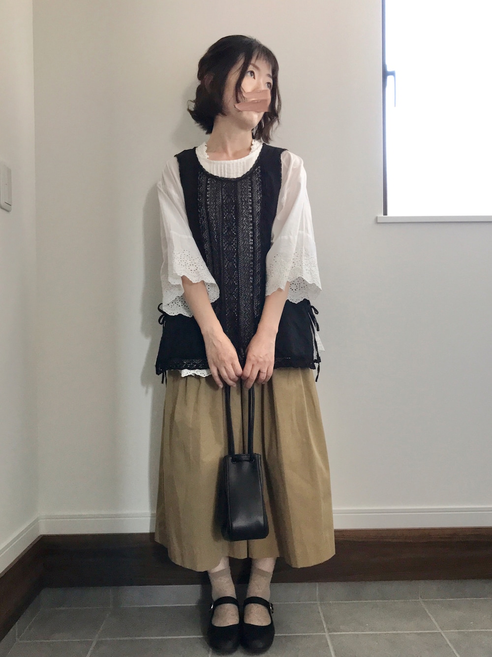 ご覧頂きありがとうございます♡ いいね♡お気に入り+コメント🗝フォルダイン嬉しいです(*ᴗˬᴗ)⁾⁾⁾ モスモスの白ブラウスに黒ベストを合わせて、ベージュのスカートで大人カジュアルに🕊✨ 髪はハーフアップにして、足元はカンフーシューズを合わせてみました\(◡̈)/ 靴下はよく見えないけどレースです⭐️ ちょっとキレイめコーデ😙🤍 昨日の投稿に、いいね、フォルダイン、コメントありがとうございました💗 嬉しくて、また活力になります🥳✨ いつも感謝、感謝です🙏😙❤️