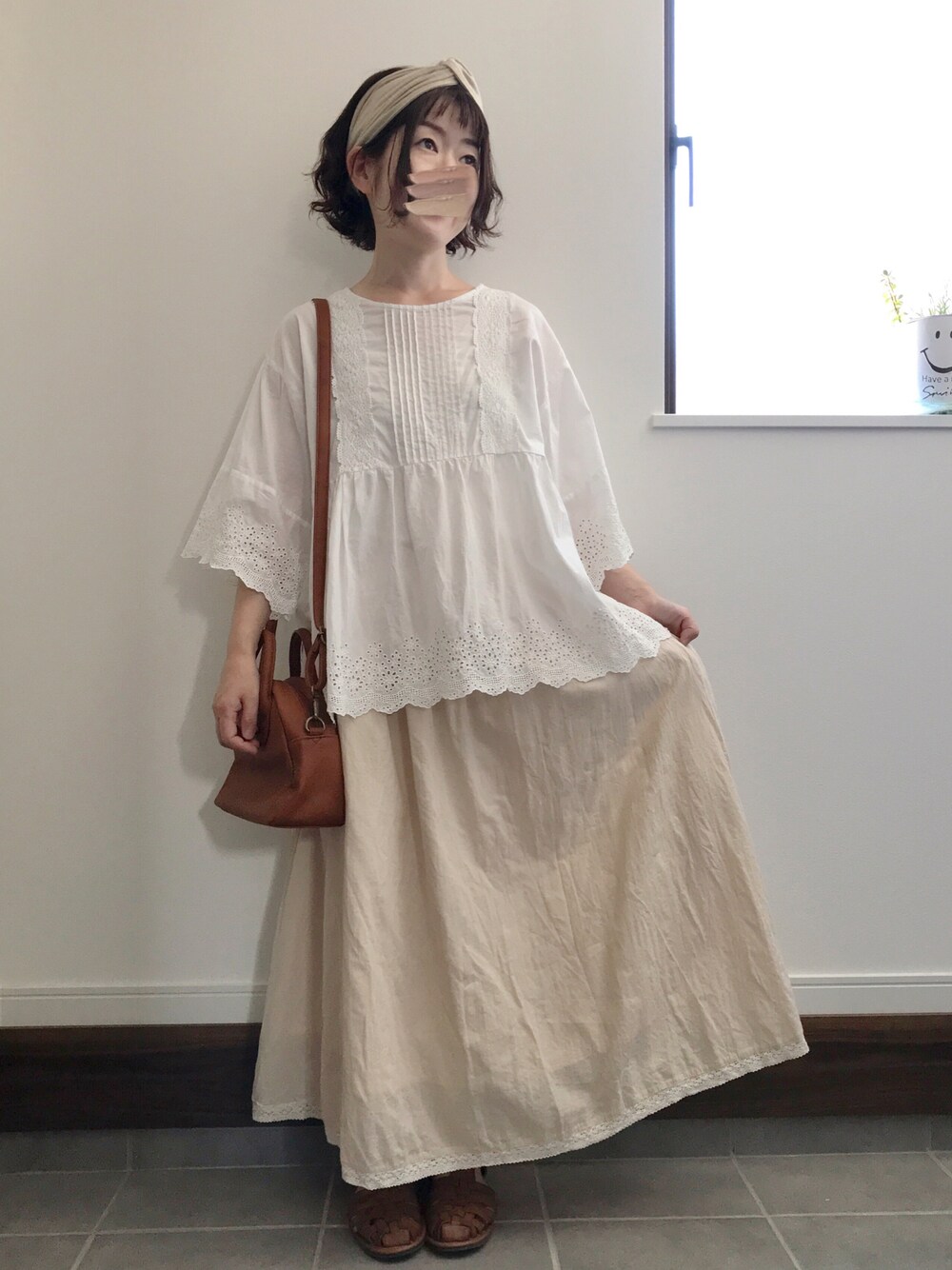 ご覧頂きありがとうございます♡ いいね♡コメント🗝フォルダインとっても嬉しいです(*ᴗˬᴗ)⁾⁾⁾ 白ブラウスにベージュのロンスカでナチュラルコーデ🤎🦔 小物はブラウンにして、大好きな🤍🤎コーデです😉✨ 気が付いたら、全身モスモスコーデでした😆 昨日の投稿にコメントありがとうございました🥺✨また、元気頂きました🙏♥️ いつも、ありがとうございます🥺💗✨