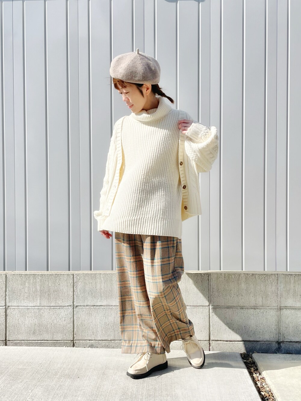 ご覧頂きありがとうございます ·͜·♡ 白ニットに、ベージュ&グリーンのチェックパンツでゆるコーデ🧺 これは、ナチュラル系なのか?トラッドなのか?🤔 自分でも分かりませんが自分色という事ですよね( ¨̮ )🎨 無理矢理カテゴライズしなくとも良いのです👍🏻 ̖́- 「兎に角、タートルネックの裾を出したかったコーデ」です( •̀ω•́ )و いいね♡save、フォロー、🗂、コメントとっても嬉しいです ·͜·♡ ありがとうございます- ̗̀ ♡ ̖́- 前回の投稿にコメントを下さった方、素敵な🗂inして下さった皆様、まとめてで失礼ですが、ありがとうございます(*ᴗˬᴗ)⁾⁾⁾ 本当に本当に嬉しいです🥹♥️