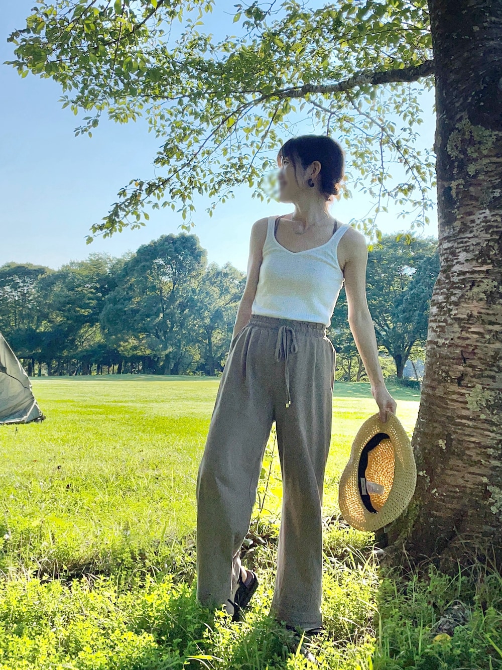 キャンプ2日目のコーデ𖤣𖥧𖥣𖡡𖥧𖤣 いい歳なのに露出度多めで失礼します🫣 暑くてもう、こんなコーデになっちゃいました☀️😵 もう、こういう時って頭の中のBGMはイエモンの「太陽が燃えている」しかないよね?❤️🔥☀️ 太陽が燃えている ギラギラと燃えている ふたりが愛し合うために 他に何もいらないだろう (lyric by 吉井和哉) 素晴らしい歌詞だよ! 「太陽が燃えている」なんて普通書けないって🙈♥️ 今回のニューアルバム「Sparkle X」も名曲揃いだし、今からツアーが楽しみです🥹♥️ (って!コーデ関係ないじゃん!🤣)