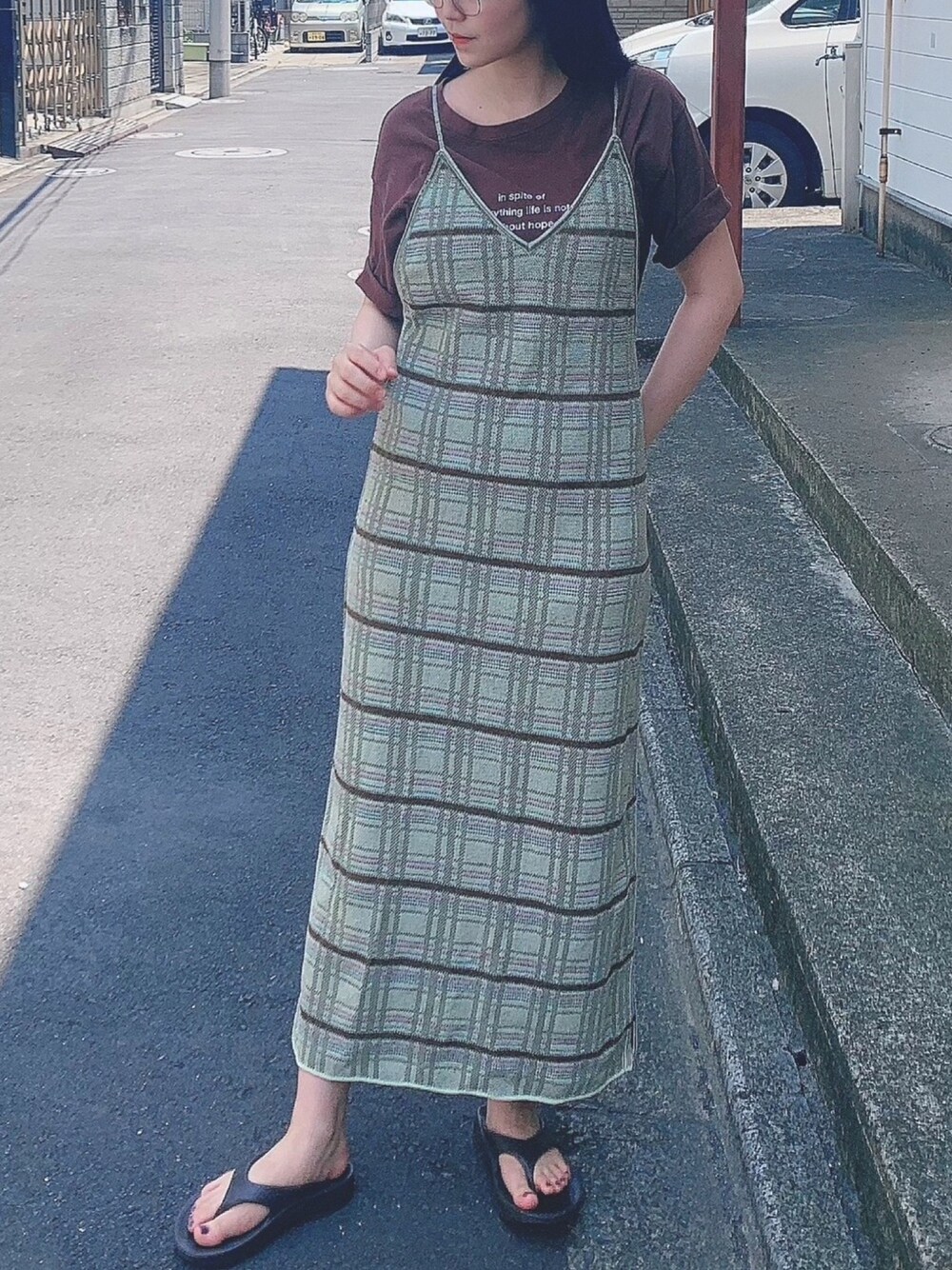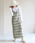 フウカのワンピース/ドレス「チェックニットキャミワンピース◆」を使ったコーディネート