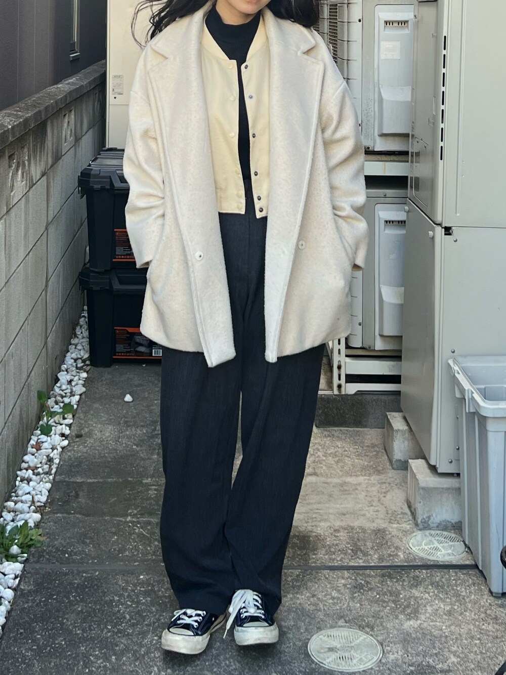 ゆるっとパンツの時は、 アウターの丈感はウエスト丈にしたくなる Insta→g_ku08
