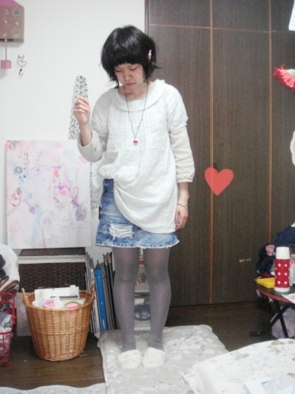 ぱすてるん: C ) 一昨日に買っってもらた ぱすてるみんとg r een の まるえり ちゅにっく*はokiniiriで. にじゅうまる◎。 ぐれーcolorのtaitsu,mo goood.やわらかいろにつつまれて くらっしゅのminiでにむすかーとでちょうどよくします. みみのあたり、おはなのかみかざり.を.