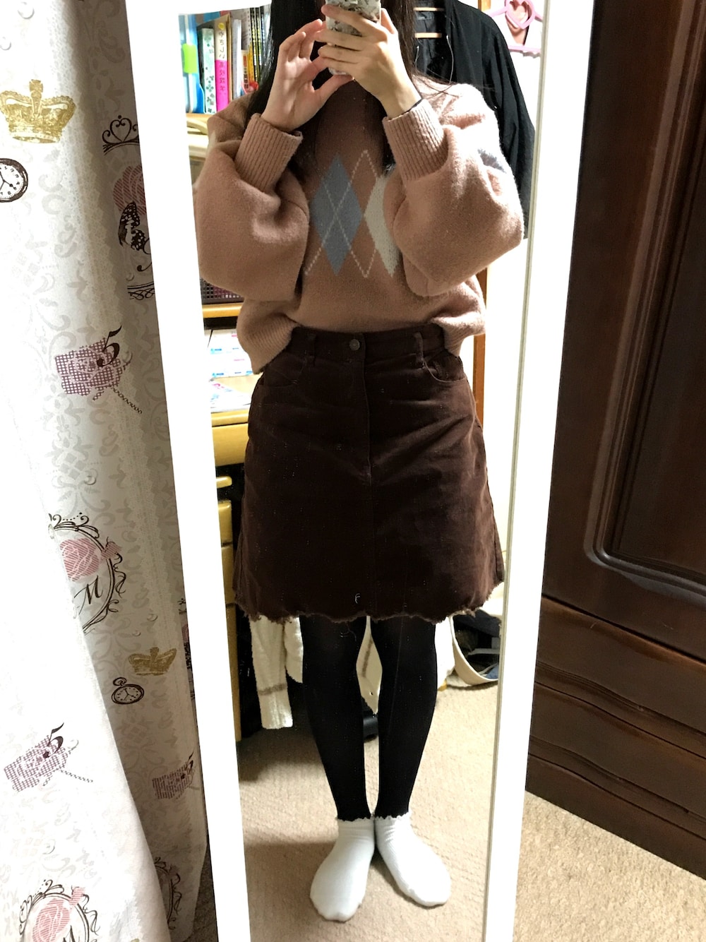 ふーみんのニット/セーター「アーガイルジャガードニット 815950」を使ったコーディネート