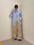 シャツはサイドにドロストが付いているので シルエットを変えて着れます! サッカー素材なのでシワになりにすくく 通気性がいいので夏でも日焼け冷房対策として サラッと羽織って頂けます!