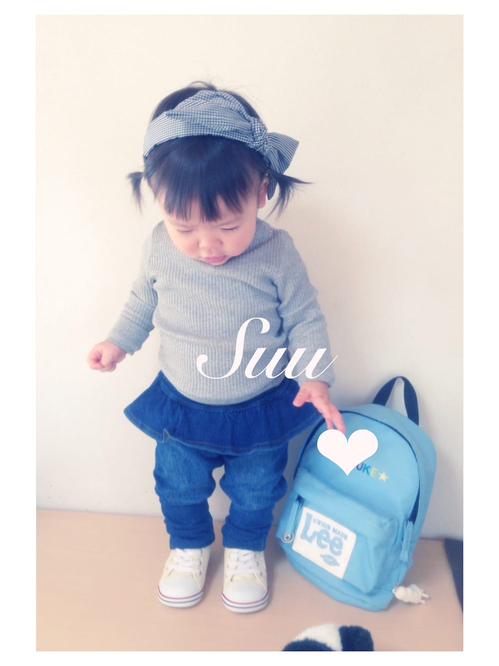 80のパンツがまだ大きい… けど気に入ってるから履かせちゃう(๑′ᴗ'๑) 下がってきておしりが出ちゃうけどw リュックはお兄ちゃんのお下がり。 名入りなんだけど…まいっか(๑′ᴗ'๑)ププღ くっついてるのはホネーキンです。