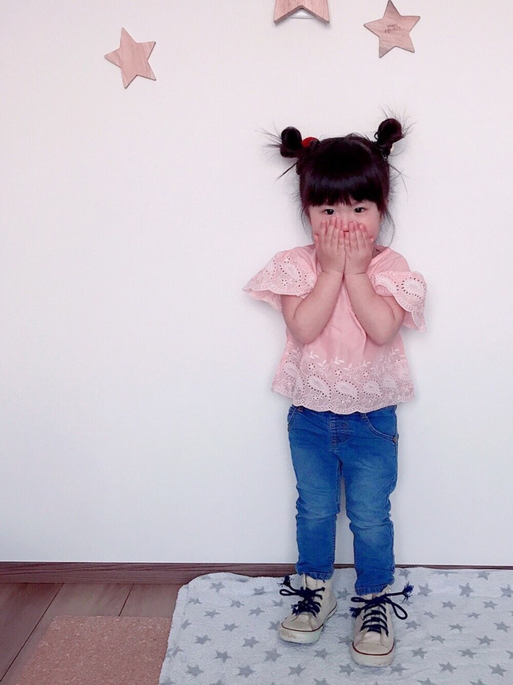ご覧いただきありがとうございます☺︎♡ 次女コーデ♡女の子らしいブラウスにはやはりデニムがすきです🙈💕最近お姉ちゃんは宿題やらなきゃでリンクできず😭リンクしてとりたいなぁ😣