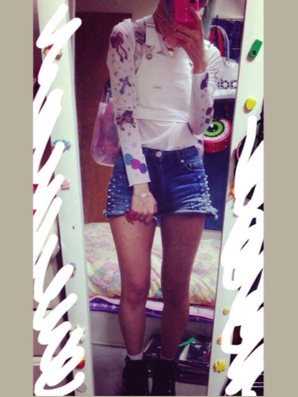 シースルーロンT→バブルス ワークビスチェ→ジュエティ ショーパン→ノーブランド