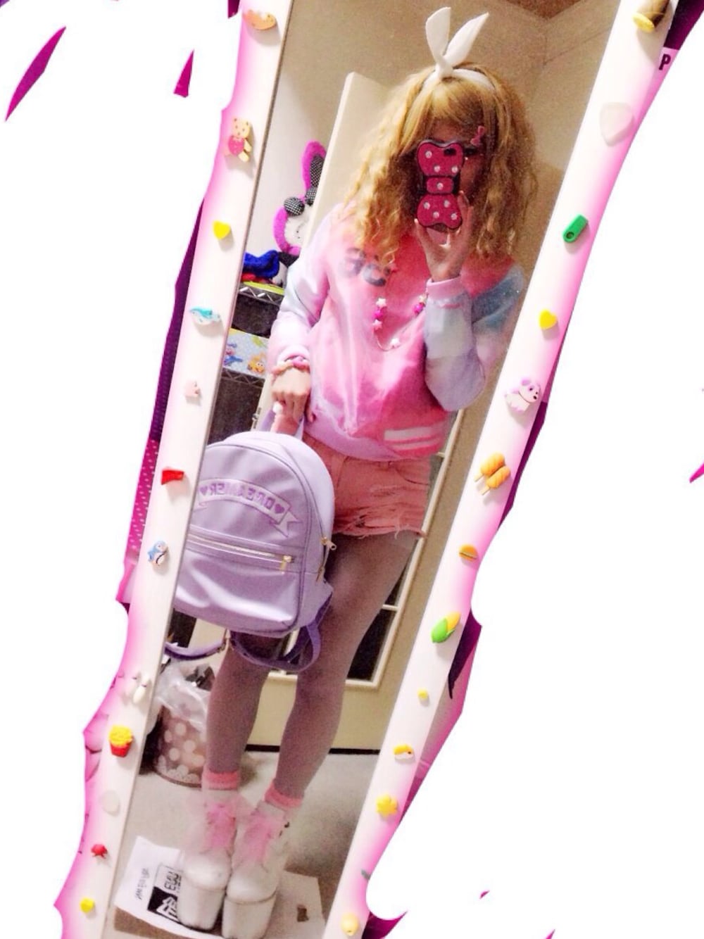 H&Mのブルゾン?の上に SPINNSのスケスケ服着て ショーパンは去年どこかで ギャルスターの厚底スニーカー リュックはWEGO 靴下は冬の室内履き用のモコモコ靴下です笑