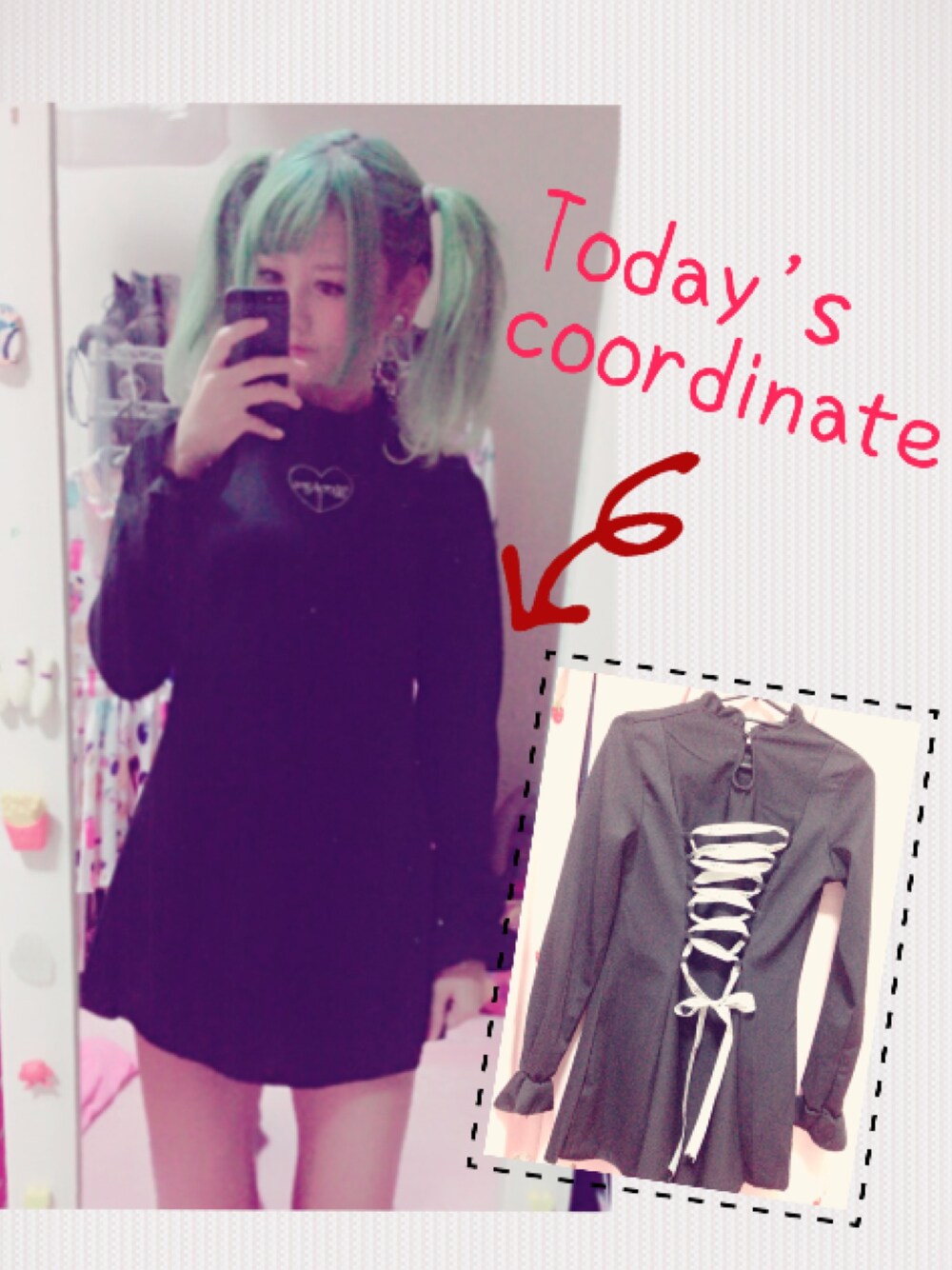 ミニ丈ワンピース💋 下にズボンを履いてるけど一件履いてない具合がかわいい😱💓 背中もレースの編み上げでキュン❤️ 一日中眠くて寒かった日😭💔