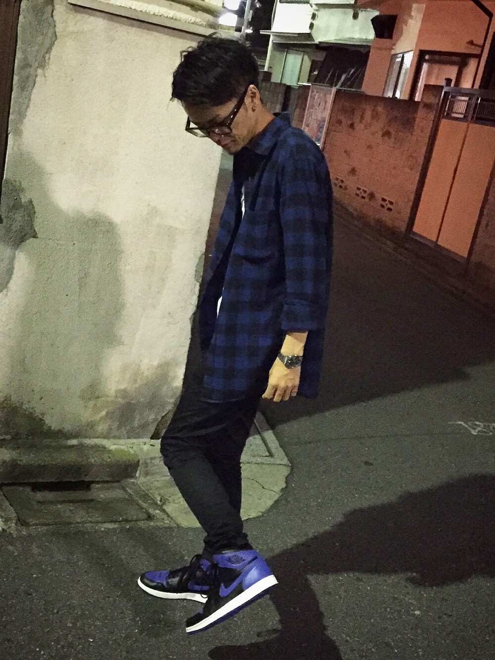黒青のチェックシャツに黒青のJORDAN 1を合わせてみました。 2012年のAIR JORDAN 1RETRO HIGH OG Royalは先日ようやくゲット。 本当探すのに苦労しました。。