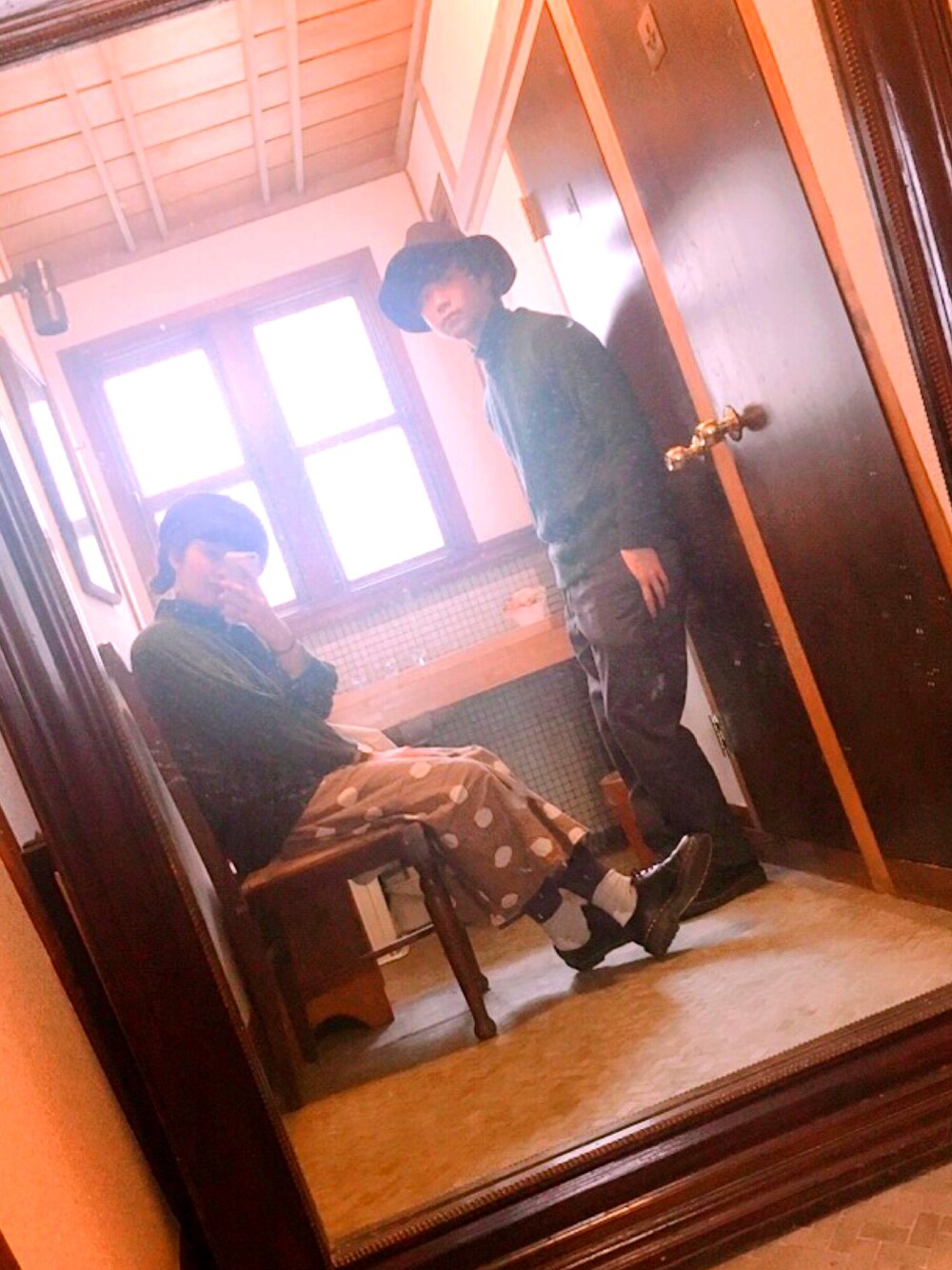 緑のニットで 秋っぽいコーデ🍇 プチドライブして、 おいしいイタリアンを 食べました🍕💕 👴@renon0125lp