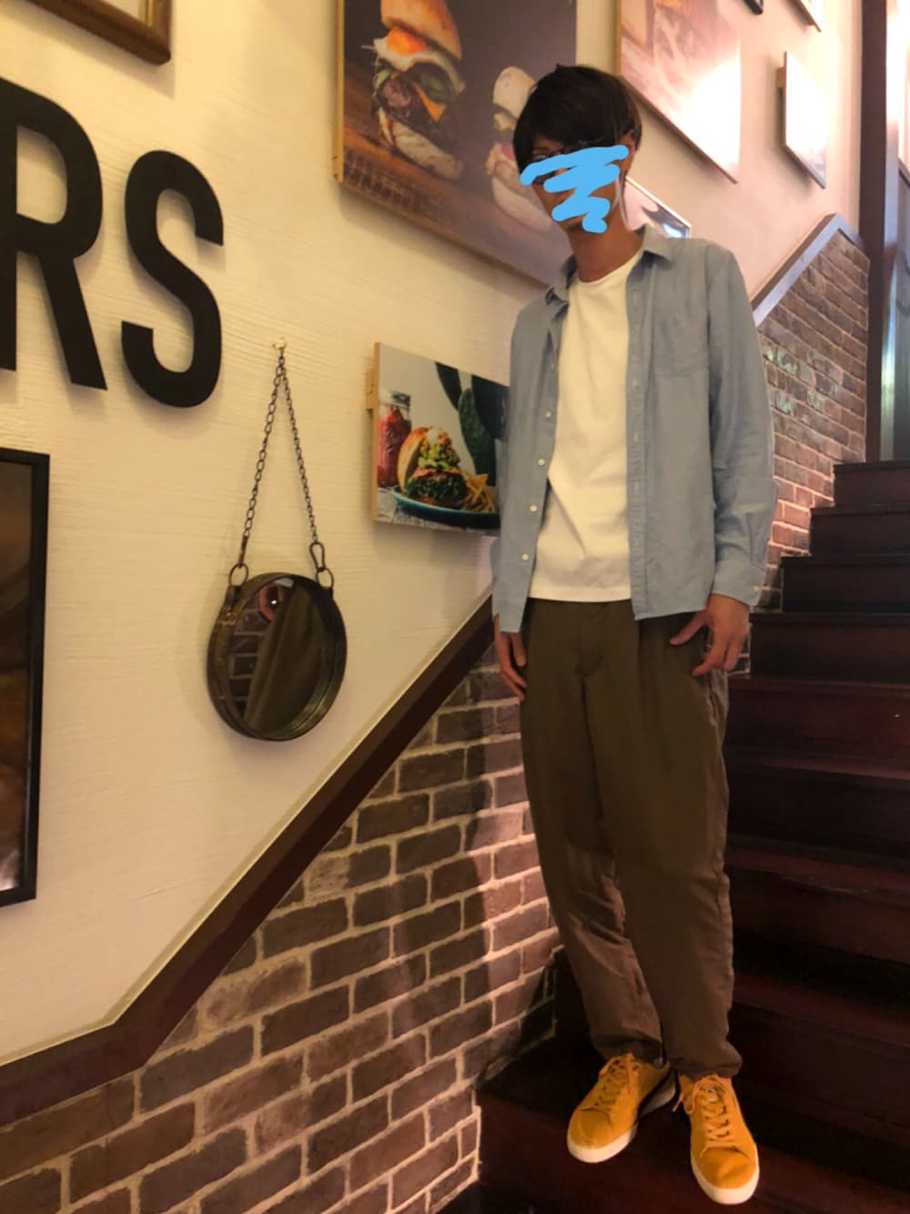 風が強く肌寒い日。 シャツを羽織ってお出かけです😊 スニーカーがイエローで派手ですが パンツをオリーブにして派手さを抑える✨ 良かったらいいね、お気に入りや フォローをお願いします😊☀️