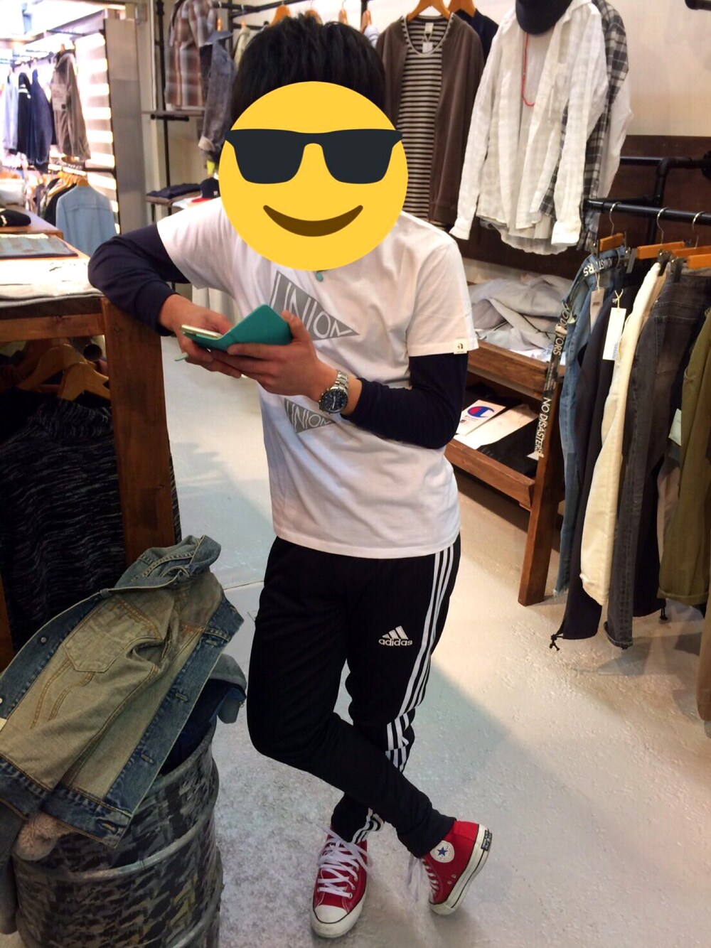 CITIZENnovel;adidas¥14,289CONVERSE¥6,380この画像から似たアイテムを検索できます1,21911お気に入り (3)110じゅんたさんへのコメントNO COMMENTコメントはスマートフォン用アプリからご利用できます着用アイテムCITIZENCITIZENアナログ腕時計 (ブルー系)アナログ腕時計探すZOZOTOWNで探すnovel;novel;Tシャツ/カットソー (ホワイト系)Tシャツ/カットソー探すZOZOTOWNで探す¥14,289adidasadidasその他パンツ (ブラック系)その他パンツサイズ:SMALL着用コーデ:20件商品を見るZOZOTOWNで購入する¥6,380CONVERSECONVERSEスニーカー (レッド系)スニーカーサイズ:5h着用コーデ:637件商品を見るZOZOTOWNで購入するじゅんたのアナログ腕時計を使ったコーディネートアメ村にて購入。 アディダスティロ👖コメントを表示2017.3.9着用ブランドCITIZENnovel;adidasCONVERSEタグ#ストリート#アディダス#黒#春#スニーカー#コンバース#ハイカットスニーカー#スニーカーコーデ#差し色#テーパードパンツモデル情報男性・165cmショートヘアー似ているアイテムCITIZEN × アナログ腕時計novel; × Tシャツ/カットソーadidas × その他パンツCONVERSE × スニーカーじゅんた@fvsu0 / 165cm / MEN / ショートヘアー0コーディネート0フォロワー注目のコーディネートアプリでもっと見るもっと見る