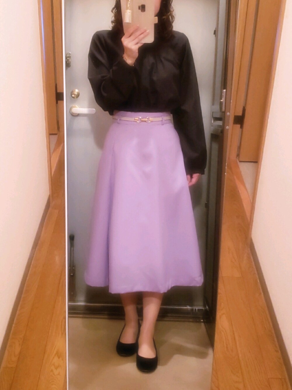yukoのスカート「【EASY CARE】合皮ベルト付きサーキュラースカート」を使ったコーディネート