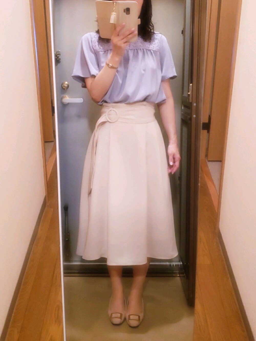 今日は雨は大丈夫かな…と恐る恐る白いボトムス💦