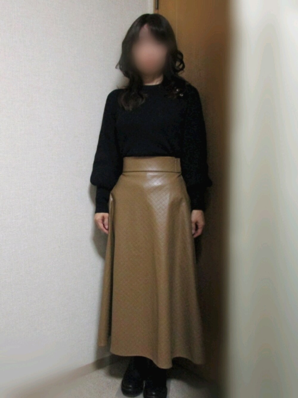 yukoのスカート「フェミニンスタイルが決まるシルエット! ヴィーガンレザーパンチングフレアースカート」を使ったコーディネート