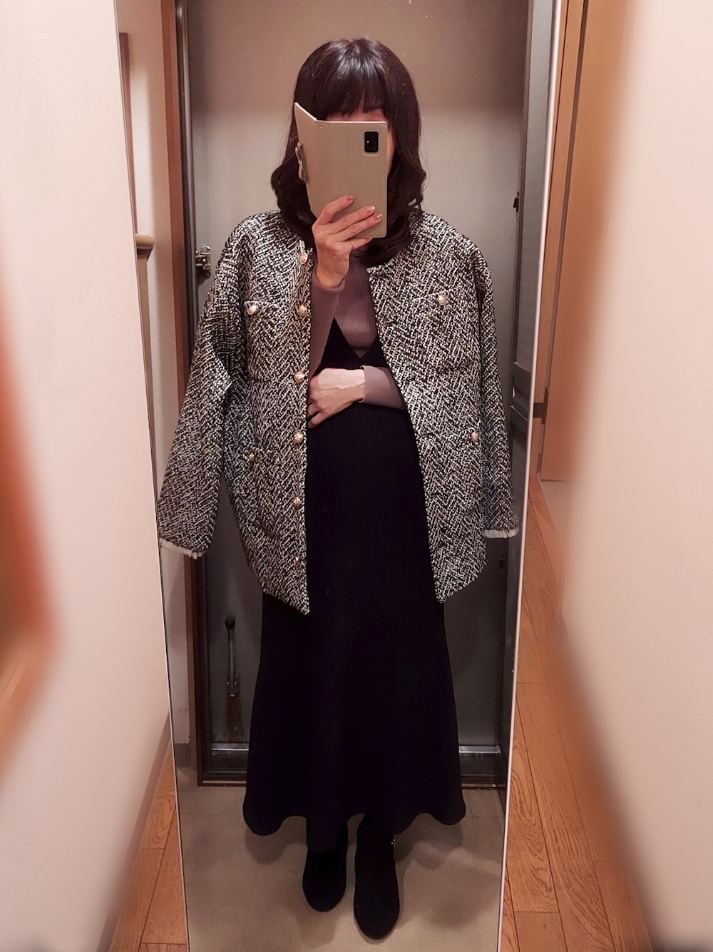 yukoのノーカラージャケット「[累計販売枚数6,500枚突破!]ツイードフリンジノーカラージャケット」を使ったコーディネート