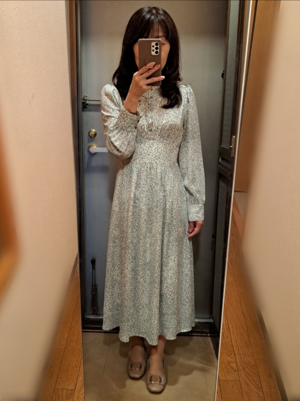 今日は昼も夜も懇親会なので、キレイめかつ楽ちんワンピースで...