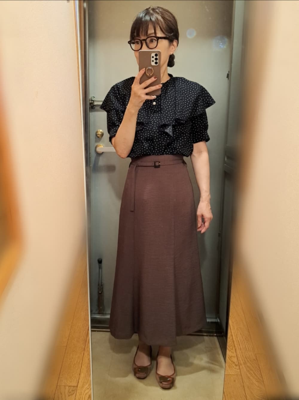 yukoのシャツ/ブラウス「【WEB限定】無地/変形ドットパール釦フリルブラウス」を使ったコーディネート