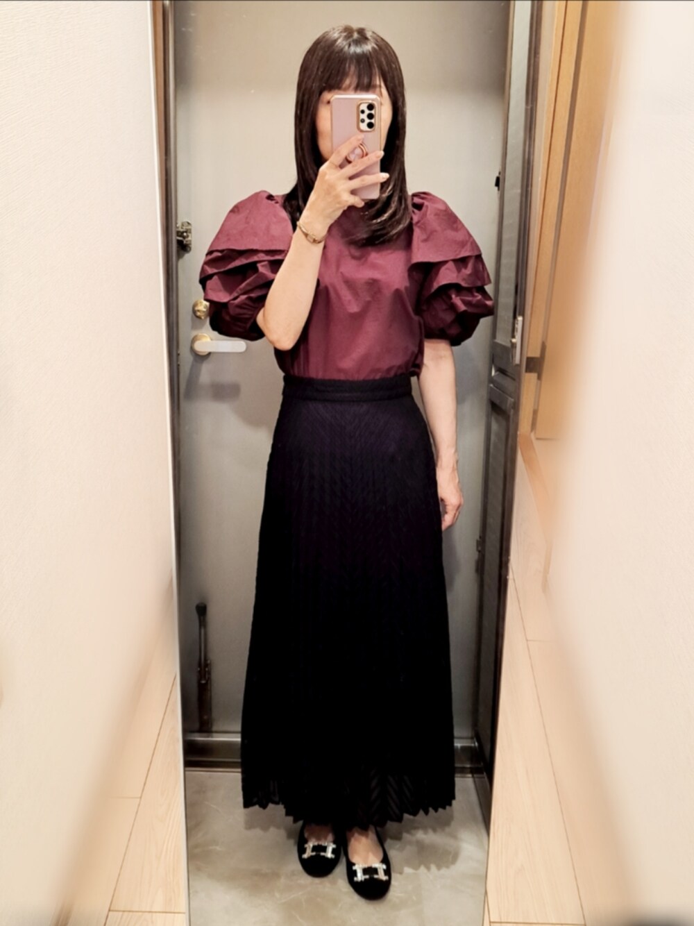 11連休の2日目は薬膳料理と中国茶のランチ😋🍴💕 (1日目はコメダのモーニングとショッピング🛍) ボリュームレイヤースリーブブラウスとドットのシアープリーツスカートコーデで👍 ☁ 予想最高気温 33度