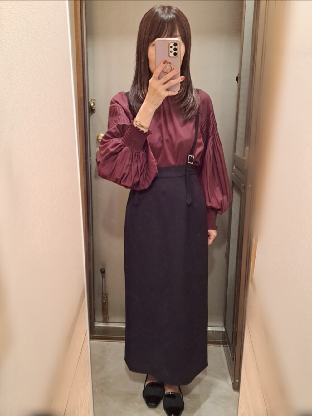 ボルドー大好きで長年愛用しているボリュームスリーブブラウス🍇 もうブランド自体なくなっちゃって...残念⤵️ ☀ 予想最高気温 23どか