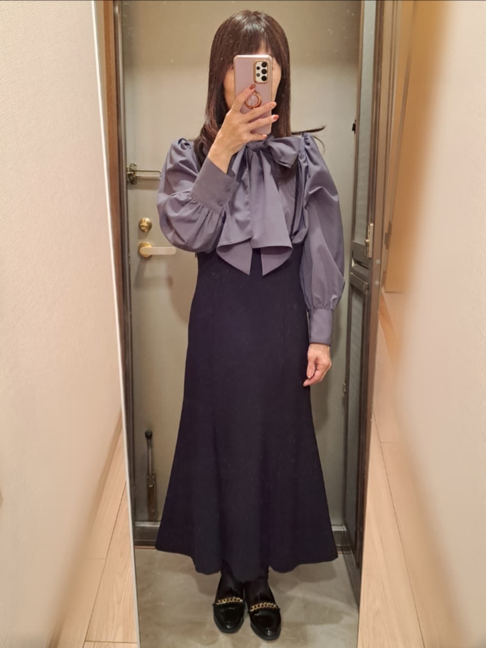 yukoのローファー「アーモンドトゥチェーンローファー 21301」を使ったコーディネート