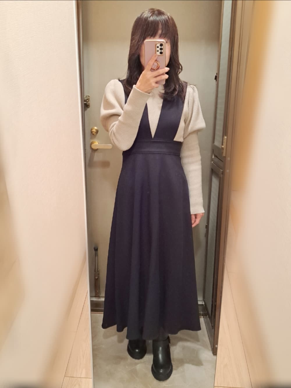 yukoのジャンパースカート「◇【Oggi掲載】ウーリッシュカルゼシリーズ フレアジャンスカ」を使ったコーディネート