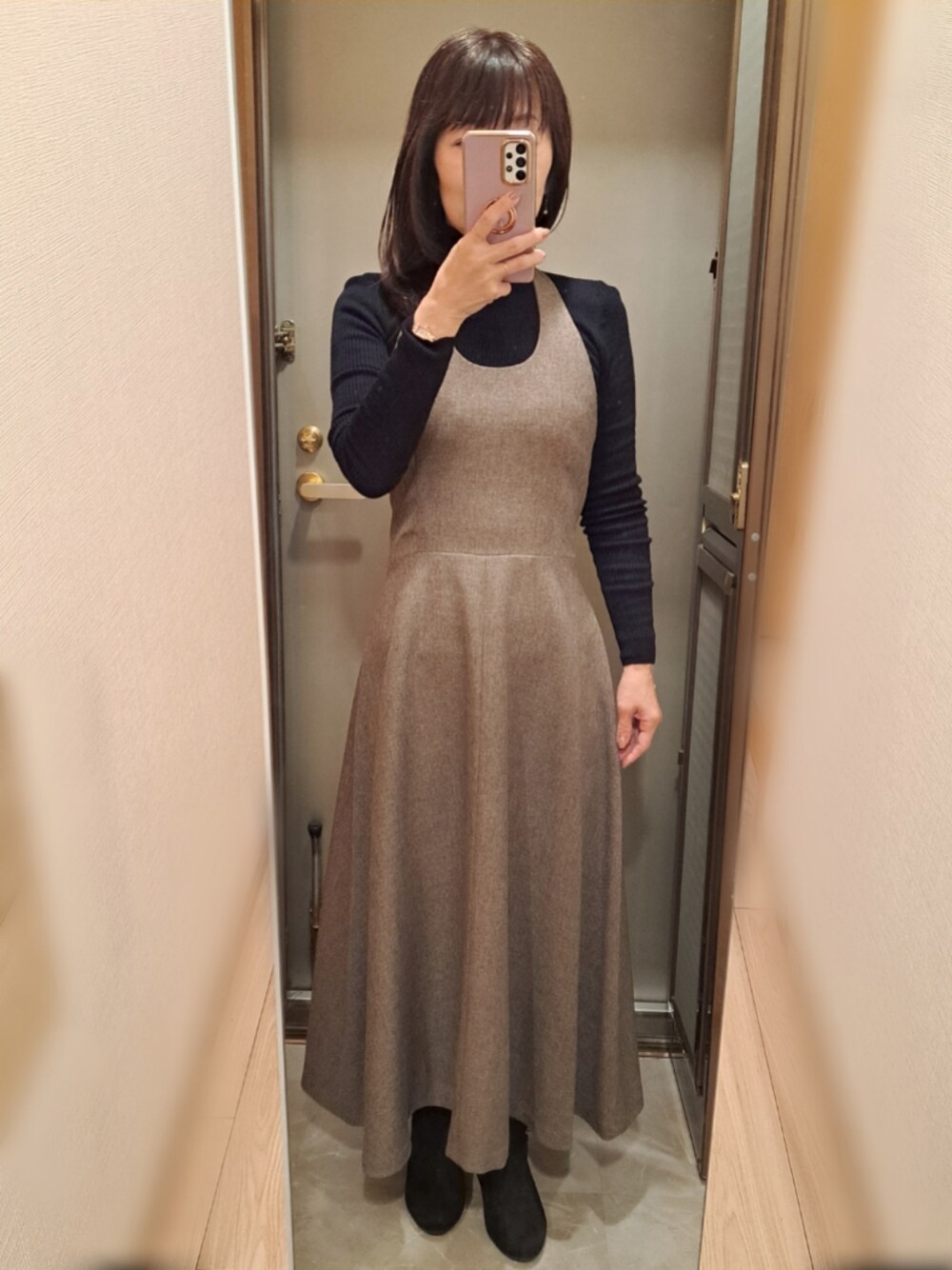 ホルターネックを見せるために、横向きで... 暖かいのは嬉しいのだけれど、なんか花粉飛び始めてる気がする💀 ☀時々☁ 予想最高気温 11度
