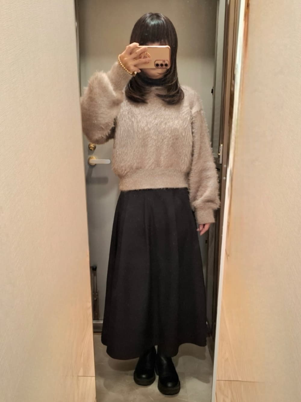 ラメシャギーニットで厚着して支度しつつ、道がガリガリに凍ってるしどうかなーと思案していたら、無理して出社しないって会社から連絡来たし、1時間ぐらい出社遅らせようかと待機中...⛄️ サイドゴアブーツで雪道対策⛄️