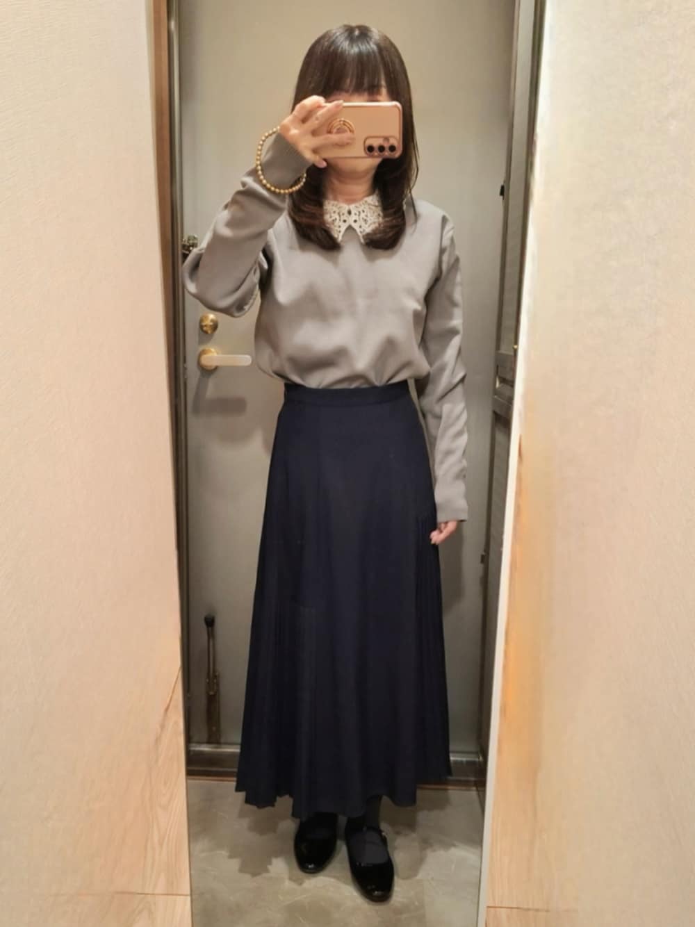 襟付きニットとサイドプリーツスカート、メリージェーンでスクールガール風... 白いソックスにすべきかなと悩み、やり過ぎかなとやめる💦 ☁のち☀ 予想最高気温 10度