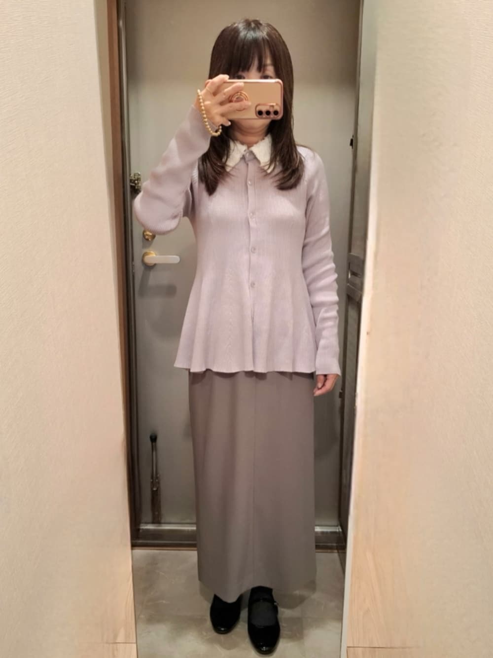 ラベンダーとグレーの組み合わせで、タイツもグレーの時、靴を黒にするかブラウンにするかグレージュにするか悩みまくり…🤔💭 結局黒のメリージェーン💨 ☀ 予想最高気温 10度