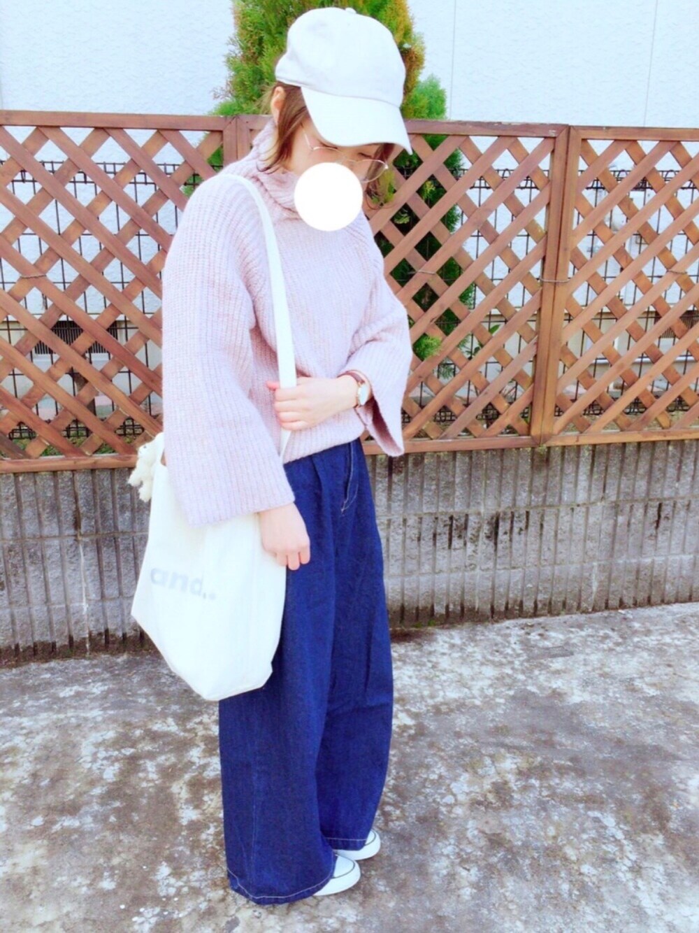 hina*🐥のニット/セーター「ワイドスリーブタートルネックミックスカラーニット」を使ったコーディネート