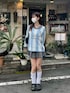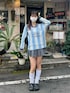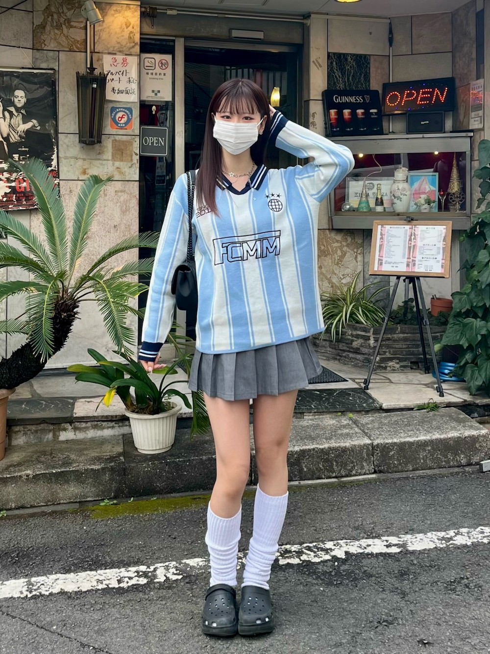 流行りのユニフォーム風のトップスがかわいい💙 ルーズソックス×クロックスの組み合わせはやっぱり最強です